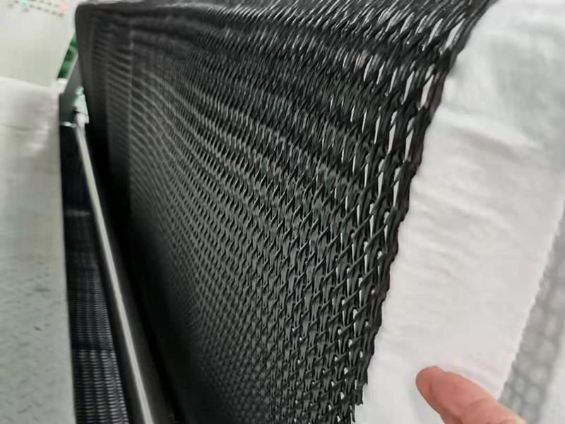 2、將滲排水片材按設(shè)計要求平鋪在場地上,當(dāng)排水場地長度超過滲排水片材的長度時,需要進行連接。連接方式采用尼龍扣,尼龍扣間隔8-10cm。寬度方向不需要連接。